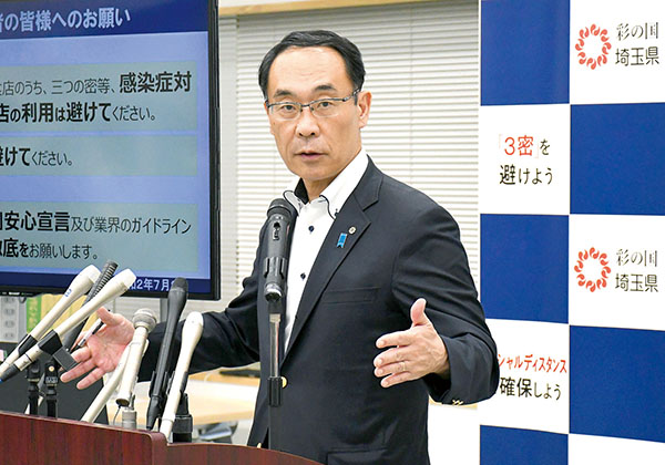 東京都から107人の新規感染者が発表されたことを受け、大野元裕知事は2日、「県内でもクラスターが発生していることを鑑み、しっかりと対応する」と述べ、東京の繁華街への外出を可能な限り避けることなどを促した。