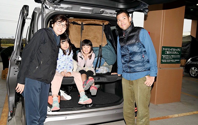 災害時に自動車内への避難を余儀なくされた場合の準備と知識を習得してもらおうと、朝霞市根岸台の「くみまちモールあさか」内のホームセンターカインズ朝霞店で28、29日、車中泊体験が実施された。