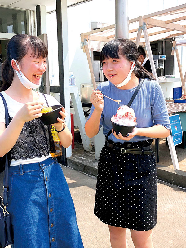 JR熊谷駅の駅ビル・アズ熊谷屋上に8~10日、小さいサイズの雪くまが登場し、ファンを喜ばせた。新型コロナウイルス感染防止対策を兼ね、一人で食べきれるようにしたという。