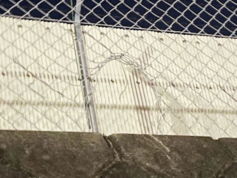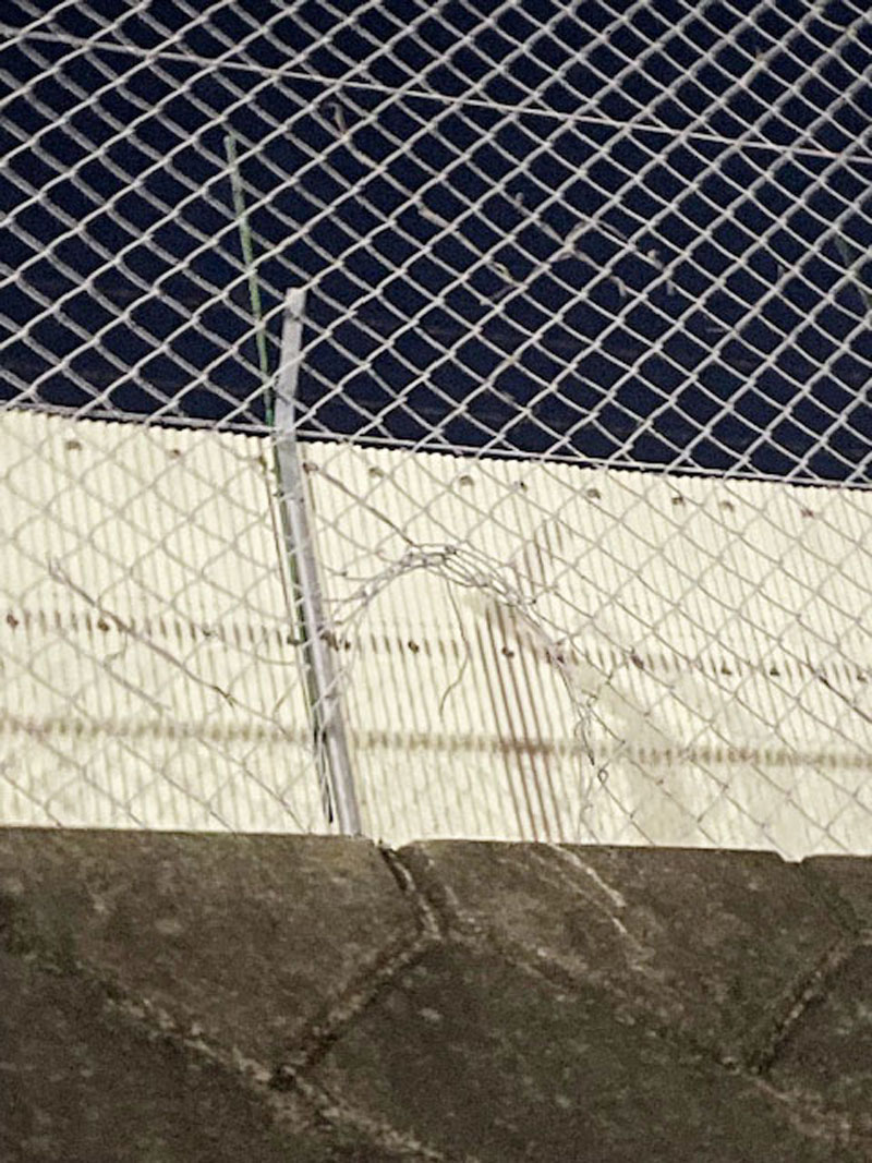 破壊…フェンス突き破ったイノシシ、体長2メートルで今も逃げる 小学校に入り込み、児童ら数十人が恐怖 周辺は住宅街、駅から2キロ…目撃が相次いでいた 破られたフェンスの穴は直径40センチ
