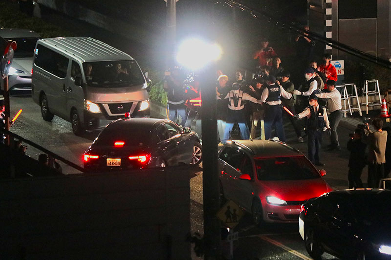 • 確保後の男を乗せた車両が蕨署に入る様子=10月31日午後10時46分
