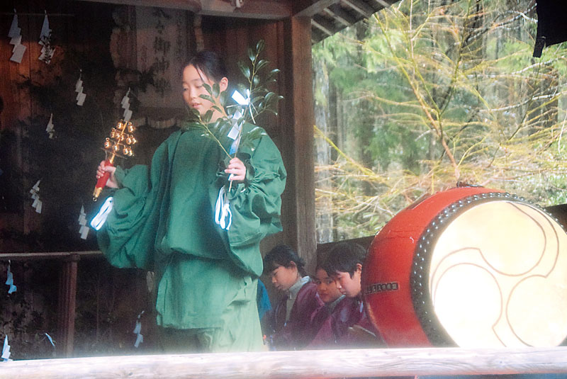 埼玉県ときがわ町西平の萩日吉神社(松岡崇宮司)で21日、例大祭が行われ、神代神楽の「小神楽」が奉納された。