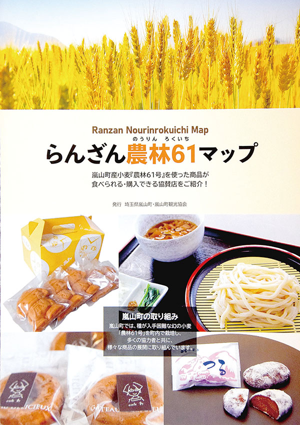 埼玉県の嵐山町は今月から「らんざん農林61マップ」スタンプラリーを実施している。スタンプ11個を集めると特典(農林61号の小麦粉1キロ、ゴミ袋セット)と交換できる。特典は先着300人。
