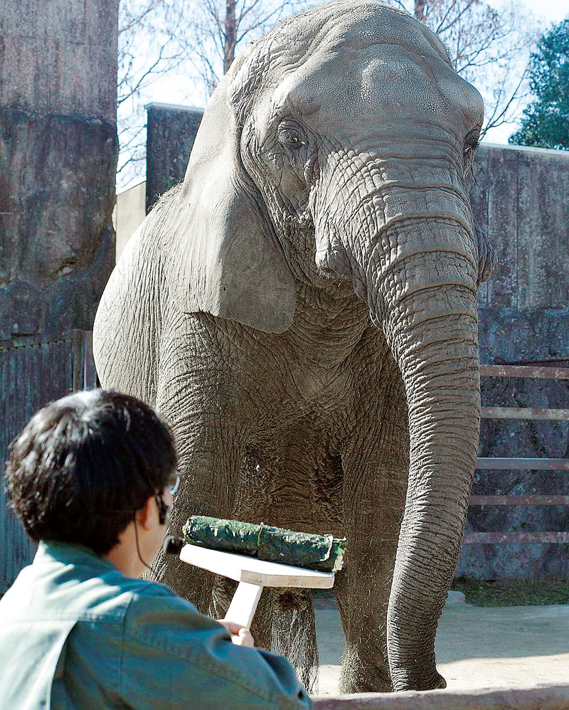 埼玉県宮代町の東武動物公園では3日、節分にちなんだイベントが開かれ、ゾウ舎ではアフリカゾウ2頭に恵方巻をプレゼントした。