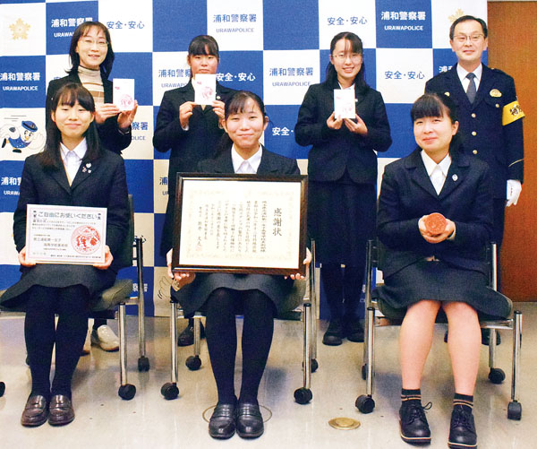 埼玉県の浦和署は16日、特殊詐欺被害抑止の年賀状スタンプを作成して警察活動に協力したとして、県立浦和第一女子高校の美術部に感謝状を贈呈した。