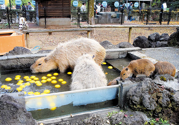カピバラ長風呂対決、5日東松山など5施設で 昨年は県こども動物自然公園の「メープル」が優勝 2019/01/04/00:00 お出かけ・イベント 動物 東松山市 ユズ湯に漬かるカピバラの親子=東松山市岩殿の県こども動物自然公園 東松山市岩殿の県こども動物自然公園など全国の5施設で5日、カピバラの長風呂対決が行われる。 もっと読む ツイート シェア シェア まちの話題の記事一覧 埼玉新聞のHOMEに戻る