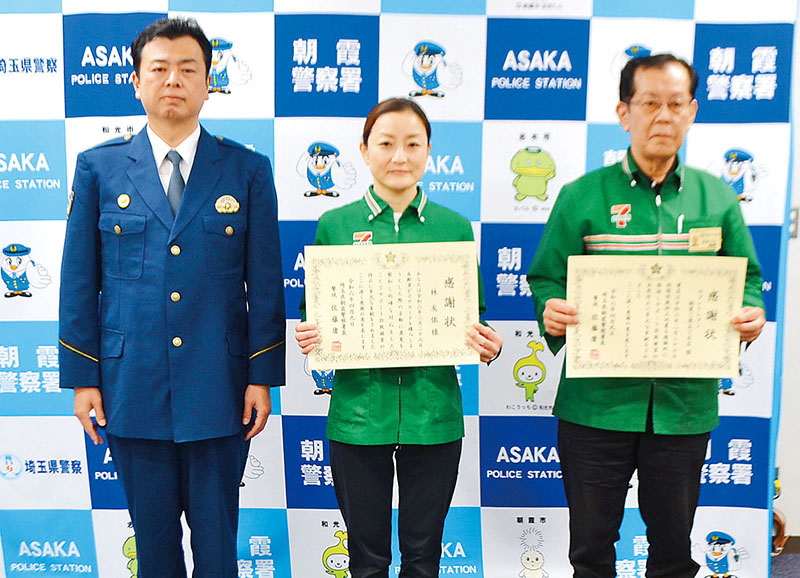 セブン店員、女性客の買い物をストップさせる…店内で異変、なぜ購入したいのか質問 直感で詐欺阻止、なんと4回目の成功 レジまで来た女性客、寸前で救われる 2024/04/16/14:37 特殊詐欺被害を未然防止したとして、佐藤庸一署長(左から)感謝状を贈呈された「セブン-イレブン朝霞三原5丁目店」のパート従業員林友依さんと経営者の大浦康弘さん=朝霞署 この写真の記事に戻る