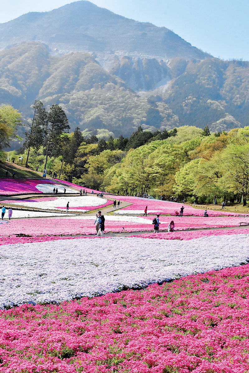 秩父市大宮の羊山公園にある芝桜の丘(約1万7600平方メートル)にスカーレットフレームやアメージンググレースなど10品種約40万株以上のシバザクラが植栽されている。市観光課によると、5月初旬ごろまで楽しめそう。5月6日まで「芝桜まつり」(午前8時~午後5時)。期間中は入園料一般300円(見ごろを過ぎた場合、入園料無料)。