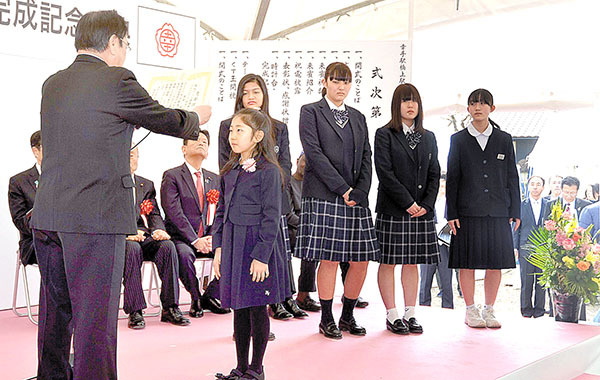幸手市の東武日光線幸手駅舎の完成に合わせ自由通路が完成し、東西口の階段には階段アートがお目見えした。