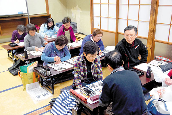 • 最後の利用団体として活動する小川書道会=16日、小川町中央公民館和室