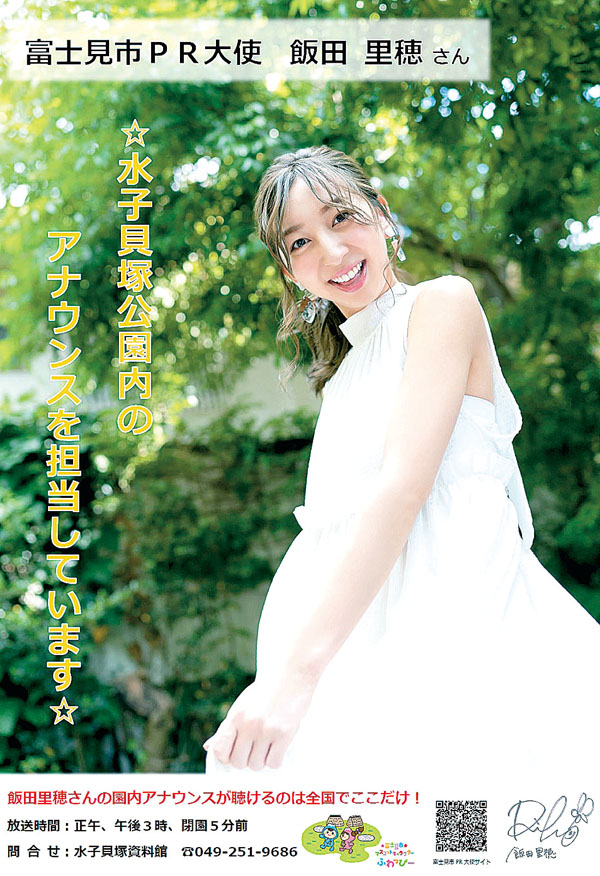 復元された竪穴式住居が設置されるなど縄文時代前期を代表する貝塚として国の史跡に指定されている富士見市水子の「水子貝塚公園」で、人気テレビアニメ「ラブライブ!」の星空凛役を務めた声優の飯田里穂さん(29)のアナウンスによる園内放送が流されている。「明るくて聞き取りやすい」「さわやか」などと評判は上々で、公園を利用する市民らの心を癒やしている。