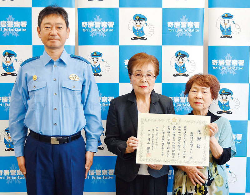 埼玉県警寄居署は14日、特殊詐欺被害を未然防止したとして、寄居町の本間タクシー(本間登志子社長)に感謝状を贈呈した。