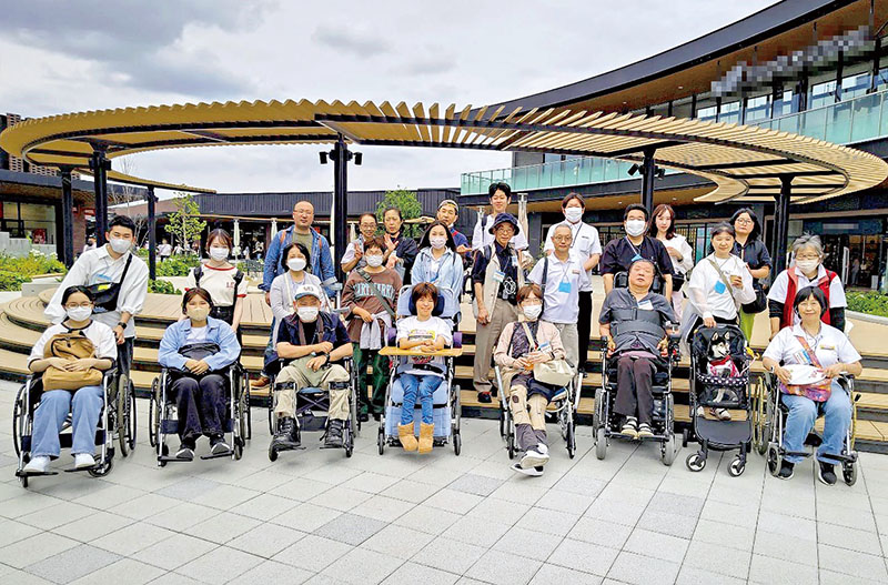参加したのは車いすの利用者4人をはじめ、視力障害などがある7人と介助者や看護師のほか、埼玉建築士会大里支部と立正大学の熊谷キャンパスで学ぶ学生ら計25人。JR熊谷駅から秩父鉄道の車両で、「ふかや花園駅」と「ふかや花園プレミアムアウトレット」を訪れた。