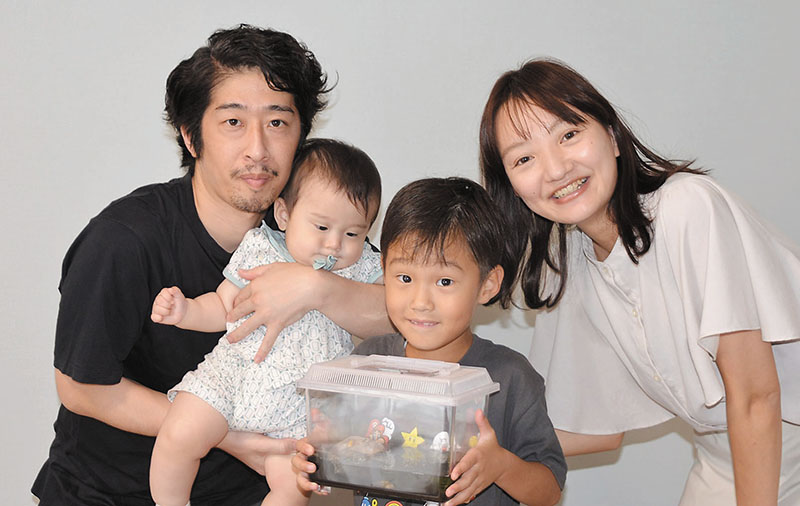 三郷市立幸房小1年の土渕蓮央さん(6)が同市中央の自宅近くの田んぼで見つけた金のオタマジャクシを家族で飼育している。ヌマガエルの中でも色素が抜けるアルビノ個体とされる。