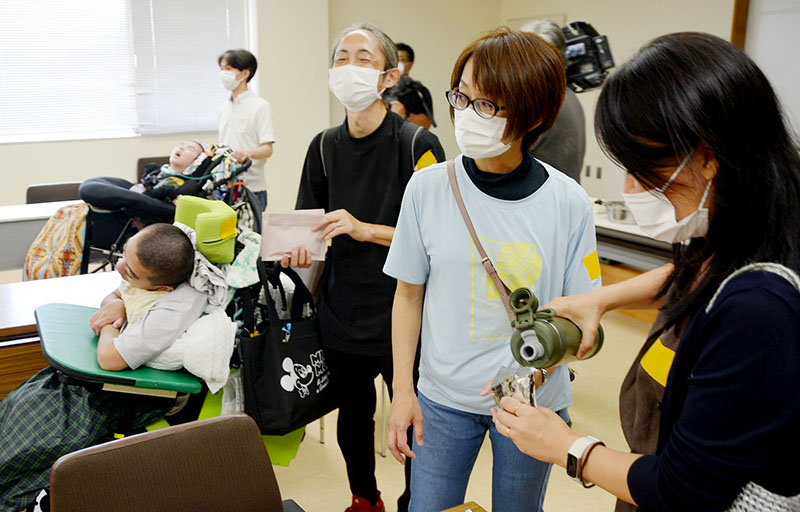 人工呼吸器やたんの吸引などが必要な医療的ケア児者とその保護者が21日、さいたま市岩槻区馬込の「県医療的ケア児等支援センター 地域センターカリヨンの杜(もり)」で、防災イベントを開いた。当事者と関係者約110人が参加し、講演やワークショップを実施。日常的な外出の大切さと、その延長が防災になることなどを学んだ。