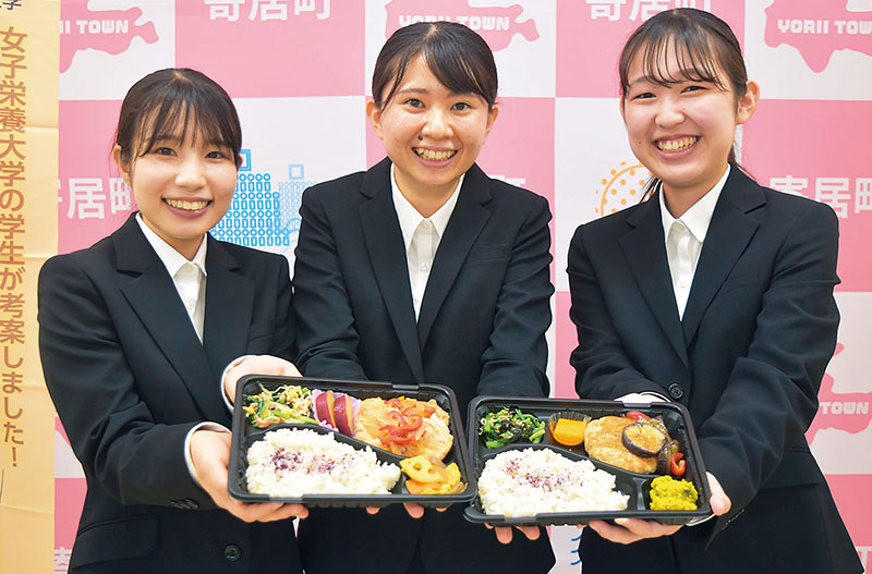 寄居町は女子栄養大学(坂戸市)との連携事業の一環として、「YORII KENKO弁当」を開発した。町の健康寿命は県内で下位の状態が続き、特に女性は2020年から3年連続で県内最下位。他市町村と比べて脳血管疾患の罹患(りかん)率や死亡率が高くなっているため、食生活の改善を目的に開発を進めてきた。2種類の弁当が完成し、10月23日から販売を開始するのを前に、完成披露会が2日に町役場で行われた。