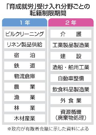 外国人「転籍」制限1年は9分野 農業や宿泊、育成就労制度