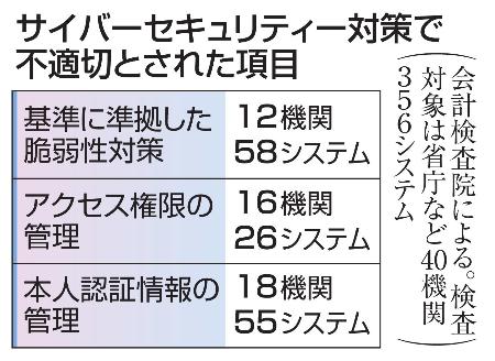 政府システム16%に不備 脆弱性対策で検査院指摘