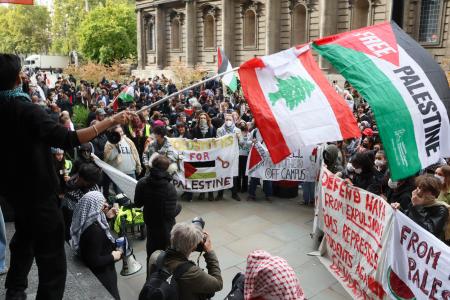 英学生、パレスチナ連帯デモ 数百人、首相は自粛を要請