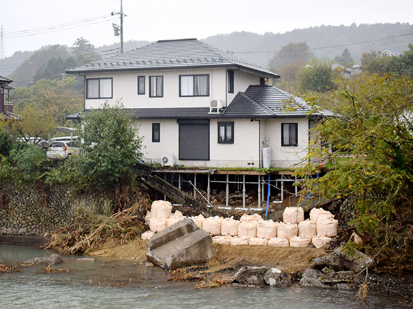 <台風19号>住宅が宙に…増水で護岸削られ、基礎部分が崩落 近隣住民、週末の雨予報に「心配」