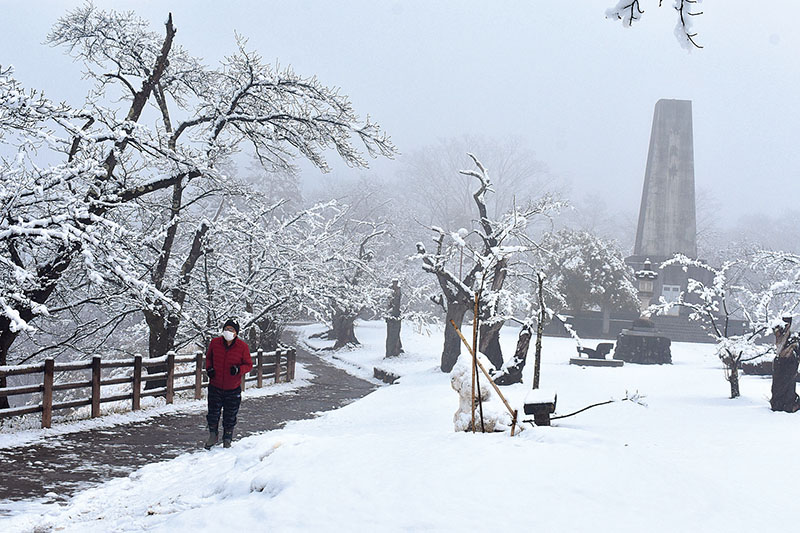 <積雪>朝まで降った埼玉・秩父は銀世界 羊山公園から雪化粧の街一望「20センチ積もると思ったが」