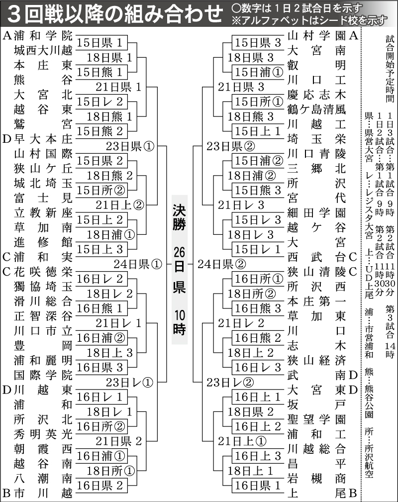 <高校野球>好カードめじろ押しの3回戦 埼玉大会中盤戦に突入 15日は順延、16日から激戦再開へ