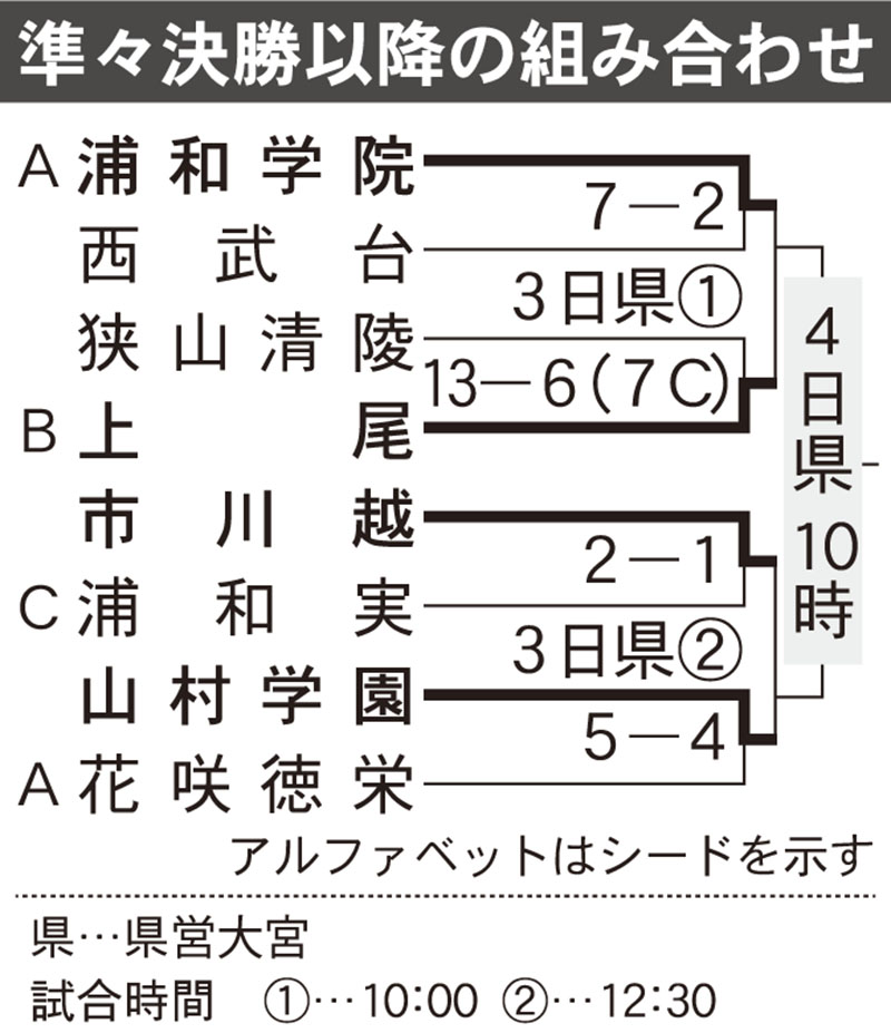 <高校野球>山村学園、シード花咲徳栄を破る 市川越、上尾、浦和学院も準決勝へ 市川越は5年ぶり