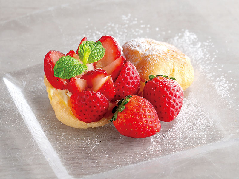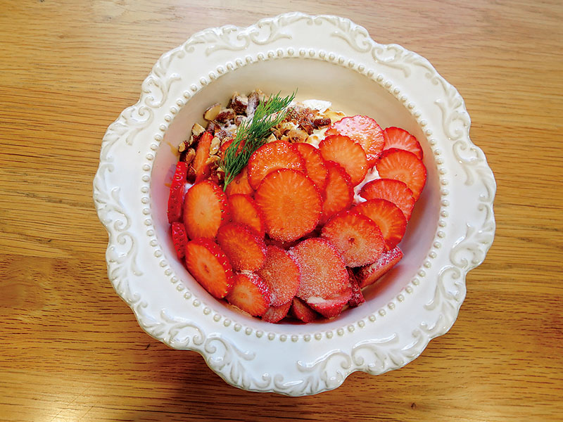 季節のデザート、旬に合わせた素材で 蓮田「Café loup Az」、パティシエ夫妻がやりたかったカフェ 5月はイチゴを使ったレモングラスのクレームブリュレ イチゴは地元の農園が朝収穫