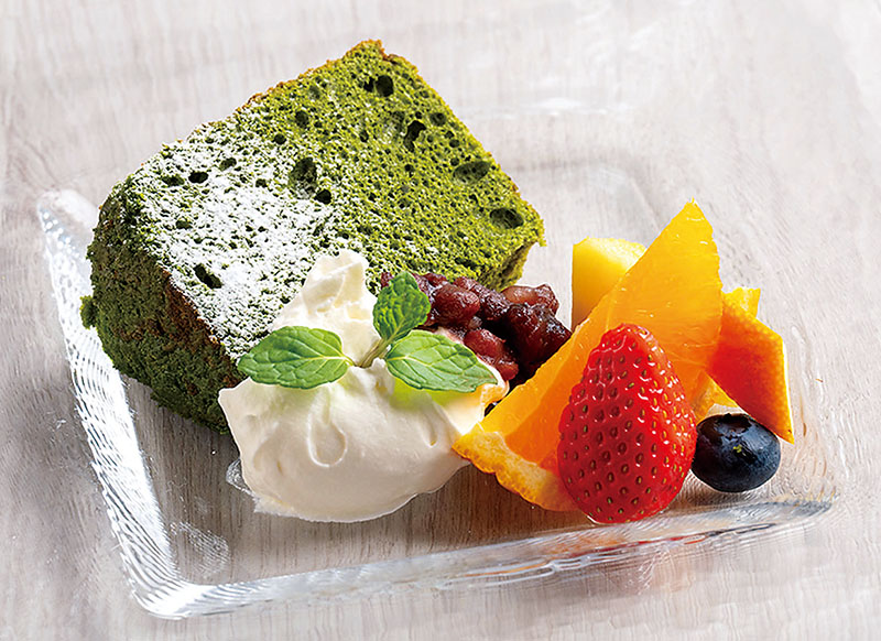 自家製に果物添えて 横瀬の「茶屋武甲」 糀と米粉のシフォンケーキ 豆乳ホイップと季節ごとの果物をそえて提供