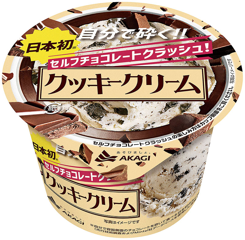 赤城乳業、きょう23日から新アイス全国発売 自分でチョコを砕いて楽しめる“セルフクラッシュチョコミント”と“セルフクラッシュクッキークリーム” カップ側面のチョコリングどう変わった?