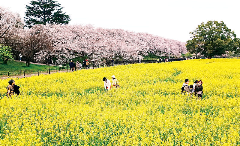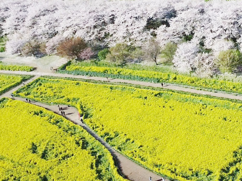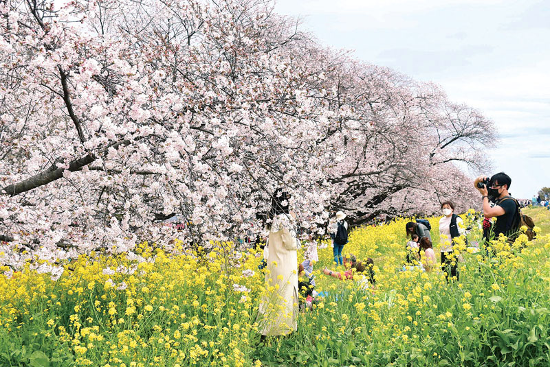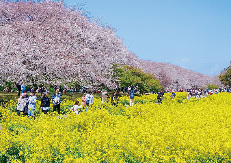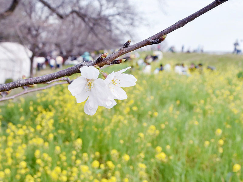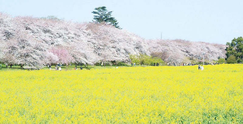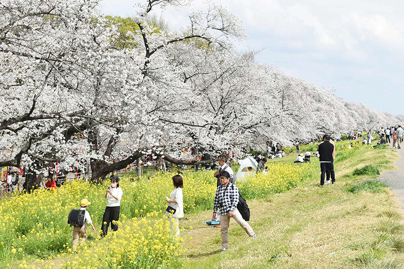 淡いピンクと黄色のコントラストが色鮮やか 幸手の権現堂公園、サクラと菜の花が見頃 1キロの堤に千本のソメイヨシノ、隣には菜の花畑…恒例の桜まつりは期間を延長、13日まで開催