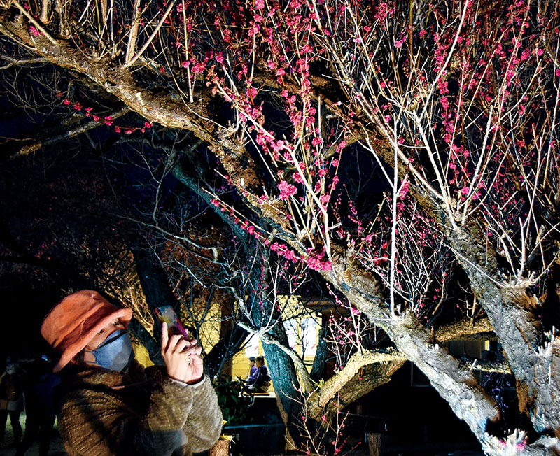 月下に漂う甘い香り 梅の花、山里の闇に浮かぶ 五分咲きの越生梅林でライトアップ 最盛期は来月上旬