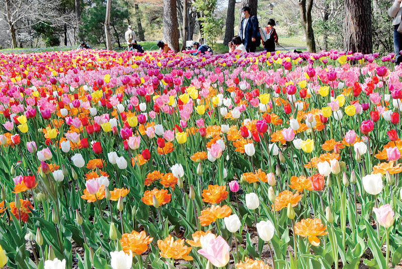 絶景!1万8千球のチューリップ、森林公園で見頃を迎える 鮮やか12品種、今月末まで楽しめる 客が感激