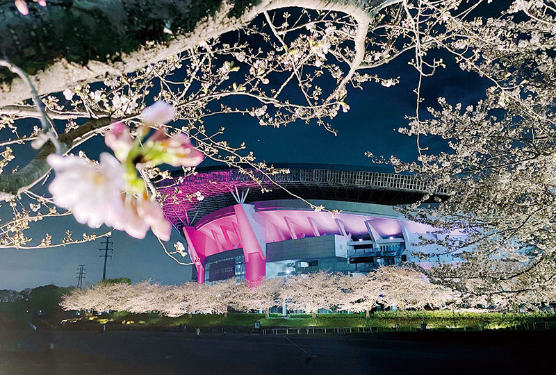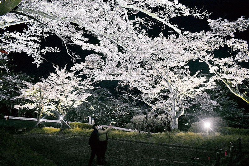 幻想的な“夜桜”、山頂付近で浮かび上がる 「美の山公園」でライトアップ 現在ソメイヨシノ満開中