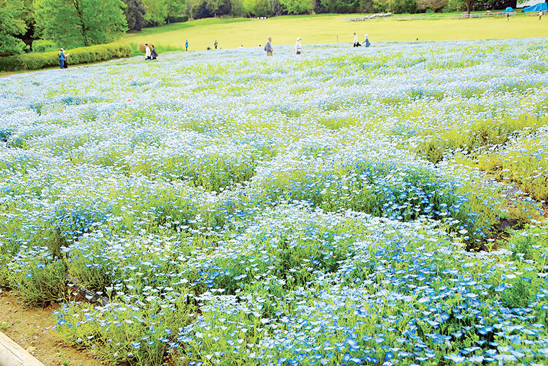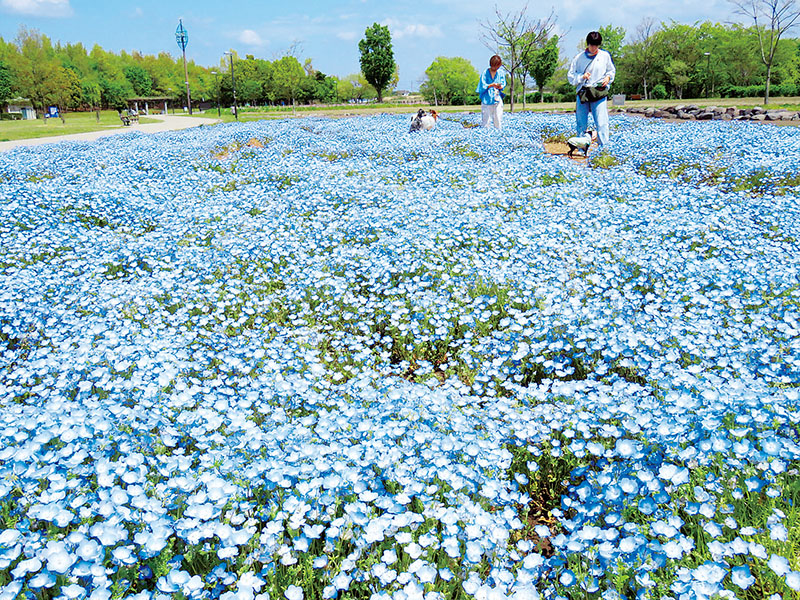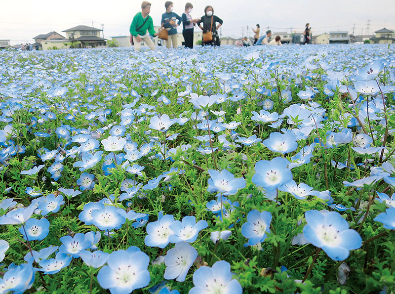 ネモフィラ絶景!爽快なスカイブルーあざやか 北本、地場物産館の隣接地一面に 見学者でにぎわい 見頃は4月いっぱいまで