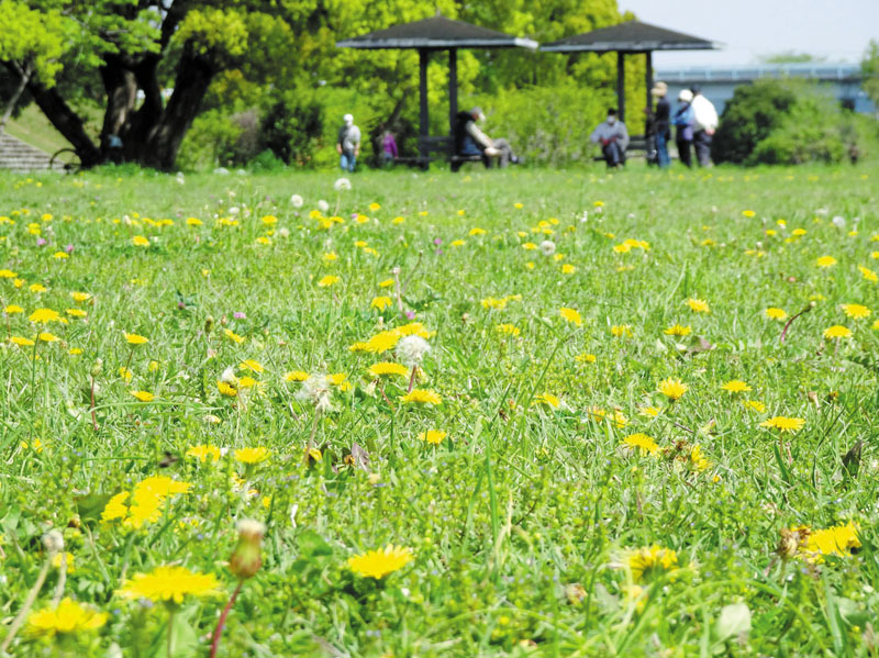 ちょっと違うタンポポ…春風に揺れる在来種・カントウタンポポ 埼玉・狭山の入間川河川敷で鮮やかに