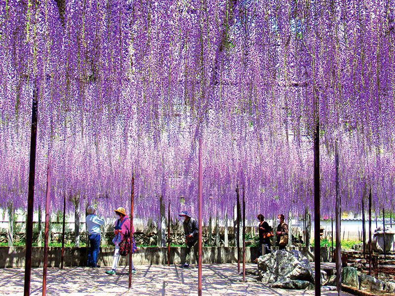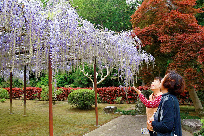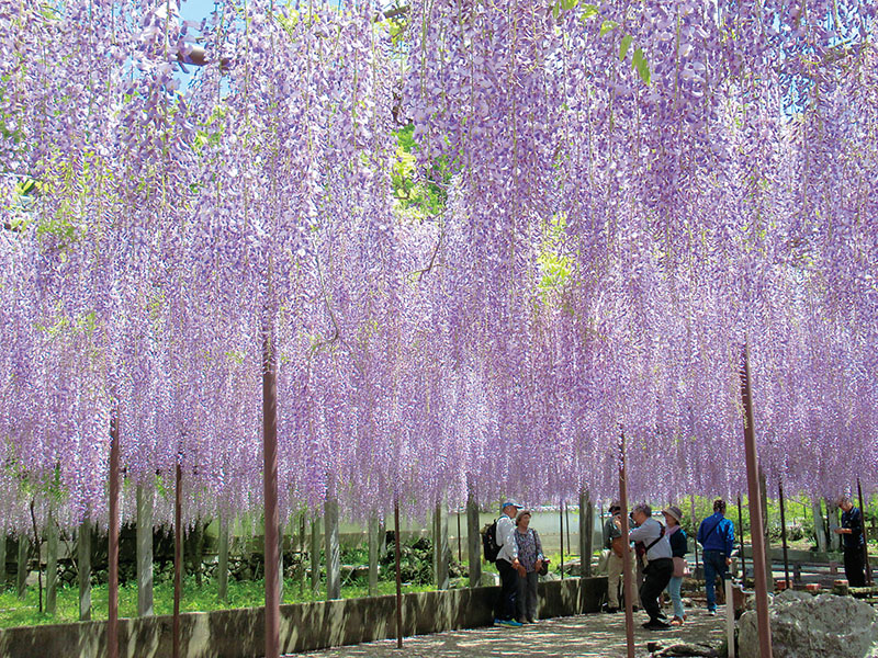 圧巻!降り注ぐ花 「骨波田(こつはた)の藤」見頃 人々包む2500平方メートル藤棚 樹齢650年超のすごさ