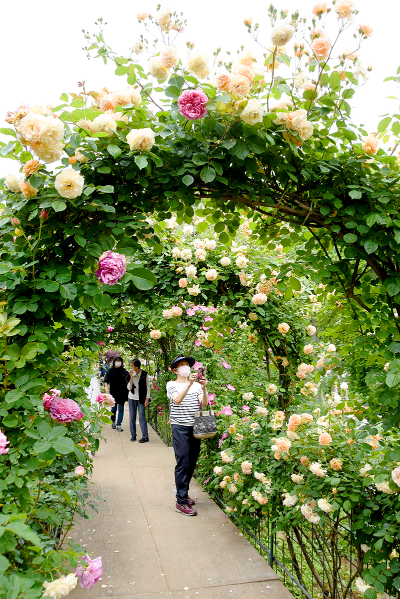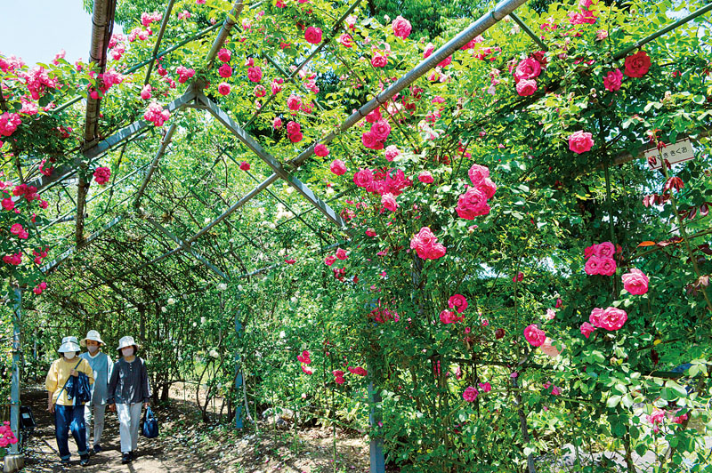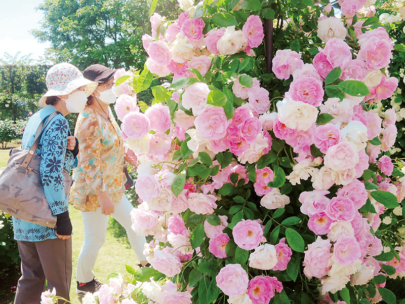 「花と音楽の館」でバラ満開…300種咲くバラ園、アーチも 鴻巣・花久の里 21日まで「花まつり」開催