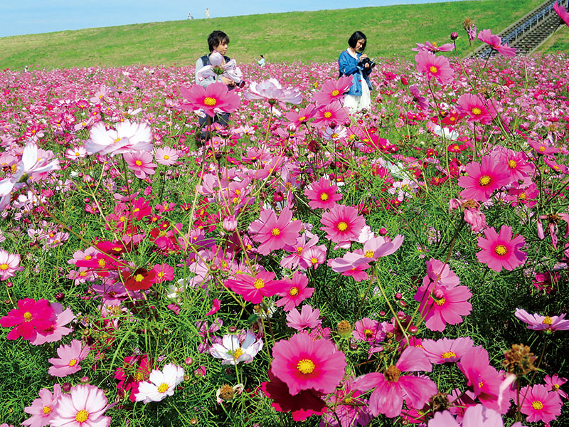 赤や白、ピンク色鮮やか 川沿いの公園でコスモス満開 埼玉・春日部 夏はヒマワリが楽しめる花の名所