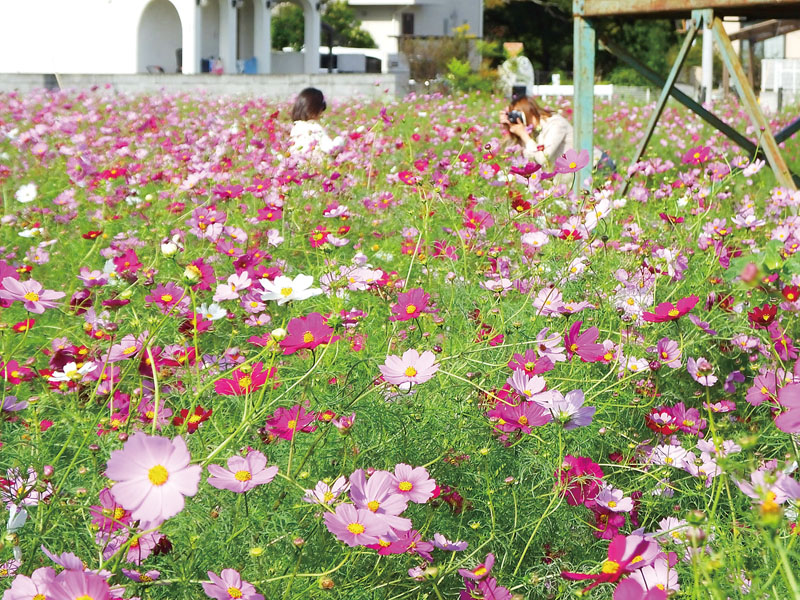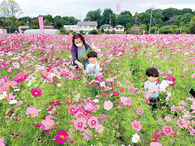 コスモスが見頃、摘み取りも可!ピンクや白色で鮮やか 2カ所に分かれた花畑、鶴ケ島で人気 計4100平方メートルの広さ、人々が楽しむ