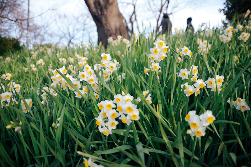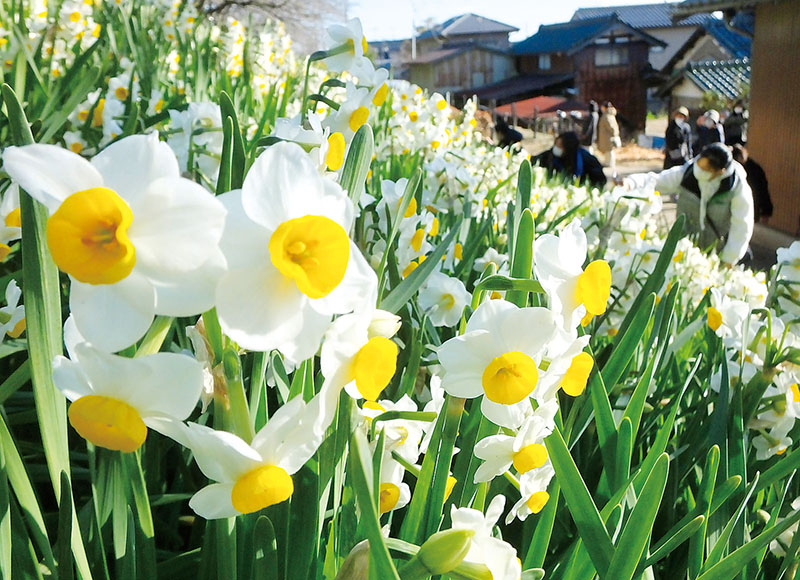 スイセンの花かれんに 一部で見頃迎え、カメラ手にした見物客も 埼玉・幸手の権現堂公園 恒例の「水仙まつり」は生育状況が芳しくなく今年は中止