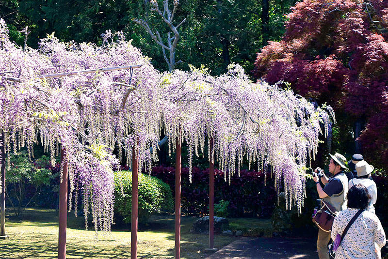 優美!垂れ下がる薄紫色の花房 樹齢450年以上の大藤が見頃 加須・玉敷公園、29日から「騎西藤まつり」