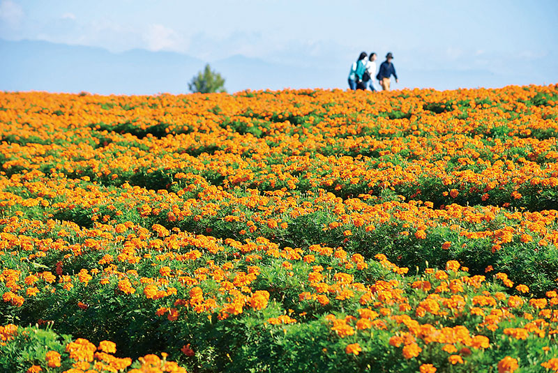 マリーゴールド1万4千株、本庄で見頃 咲く時期を調整…10月上旬から11月上旬に咲く 秋風に揺れるオレンジの花、訪れた人らを楽しませる