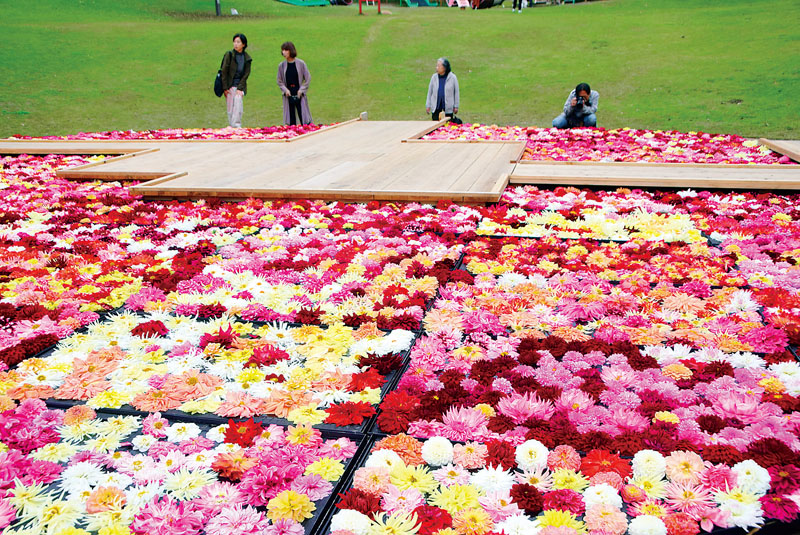 きれいで驚いた!ダリアの花浮かぶ池、東松山ぼたん園にお目見え 赤やピンク、紫など5千輪のダリアが池に 人気集める演出…来場者ら、思わずカメラ向ける あす4日まで