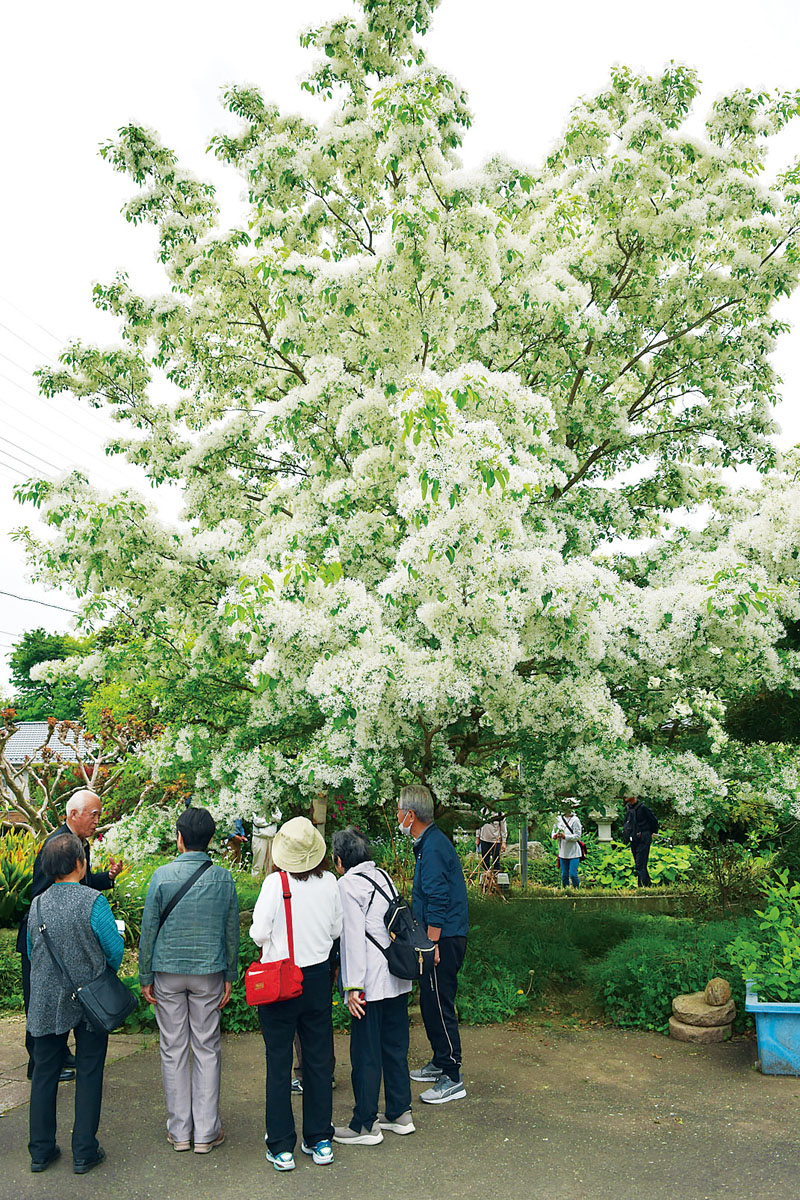 淡雪をまとったよう…幸手に幻想的な光景広がる 元幸手市長宅でナンジャモンジャが見頃 半世紀近く、妻と二人三脚で育てた55本…開花時期には庭を開放、見学者を迎え入れる