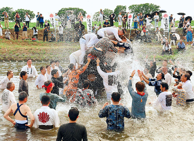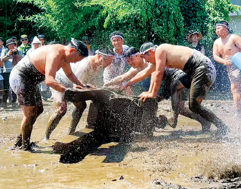 みこしも担ぎ手も泥だらけに…上尾で4年ぶり「平方のどろいんきょ」 豪快に転がし疫病退散、五穀豊穣祈る