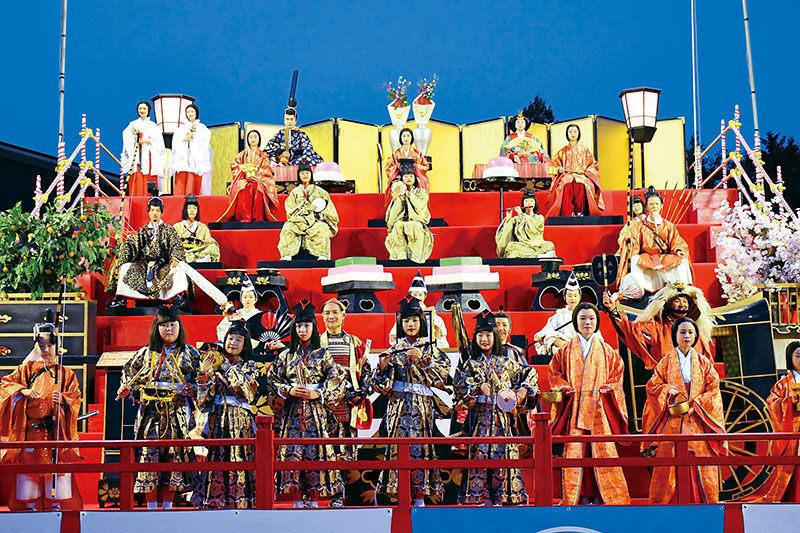 最上段には「本物」が登壇 岩槻まつり「ジャンボひな壇結婚式」 年内結婚予定のカップルがおひなさまに