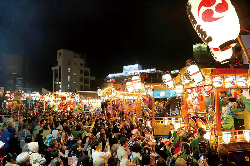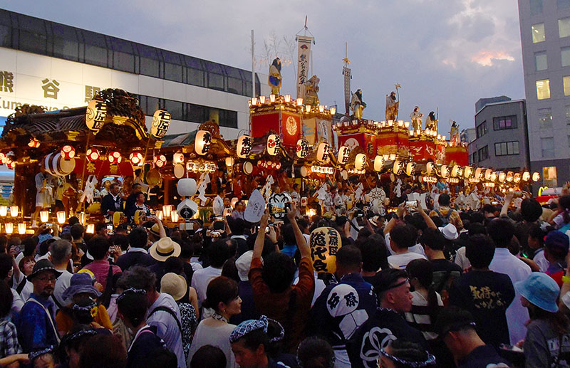 「関東一の祇園」熊谷うちわ祭始まる 酷暑を吹き飛ばすような“たたき合い” きらびやかな山車と屋台、猛暑の町内を巡行 夕暮れ迫る熊谷駅前に全12台が勢ぞろい 22日まで