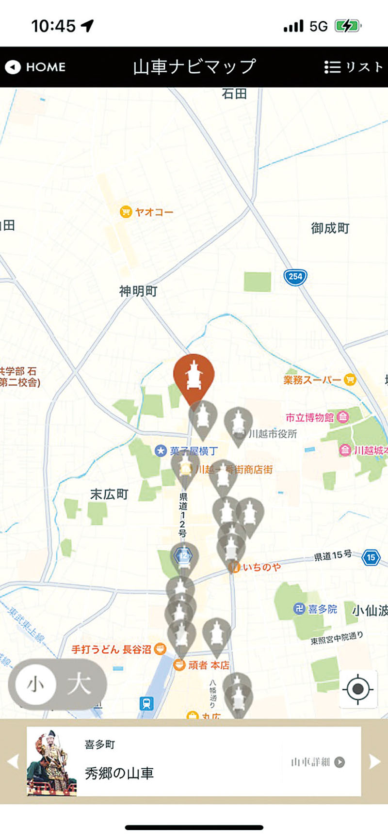 川越まつりをアプリで配信 キャッチフレーズは「川越まつりを2倍楽しむ」 山車の現在位置や近くの休憩所を探すことが可能