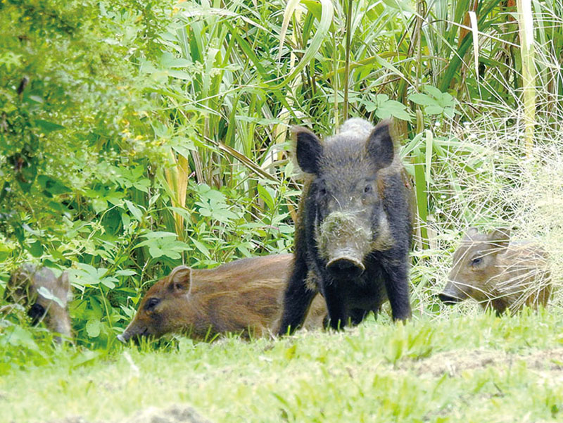 珍しい子連れイノシシの撮影に成功 埼玉・加須などの渡良瀬遊水地で相次ぐイノシシ目撃 「注意」の看板も